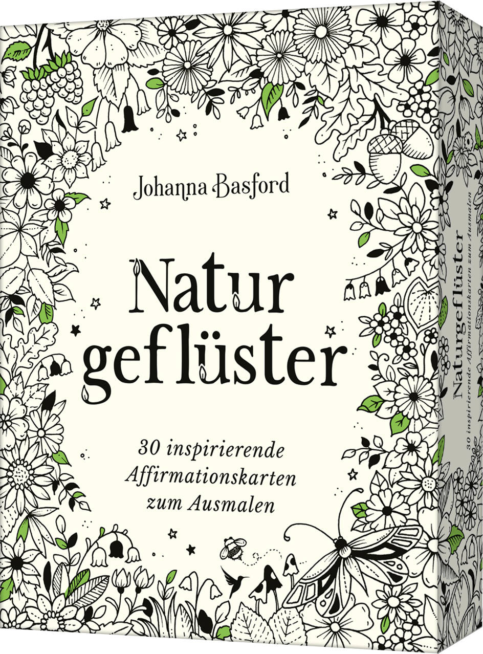 Tauche ein in Bestseller-Illustratorin Johanna Basfords Welt voller Inspiration und Gelassenheit! Dieses zauberhafte Kartenset vereint detailreiche Naturmotive mit stärkenden Affirmationen – perfekt für alle, die sich nach einer kreativen Auszeit sehnen. 30 liebevoll gestaltete Karten laden zum Ausmalen, Betrachten und Loslassen ein und schenken Momente der Achtsamkeit und Leichtigkeit. Mit dem enthaltenen Aufsteller lassen sie sich einfach dort platzieren, wo man sie am meisten braucht – ob auf dem Schreibtisch, der Kommode, bevor man das Haus verlässt, oder an einem besonderen Platz im Regal. Für sich selbst oder als Geschenk – dieses Kartenset ist ein Durchatmen für die Seele!