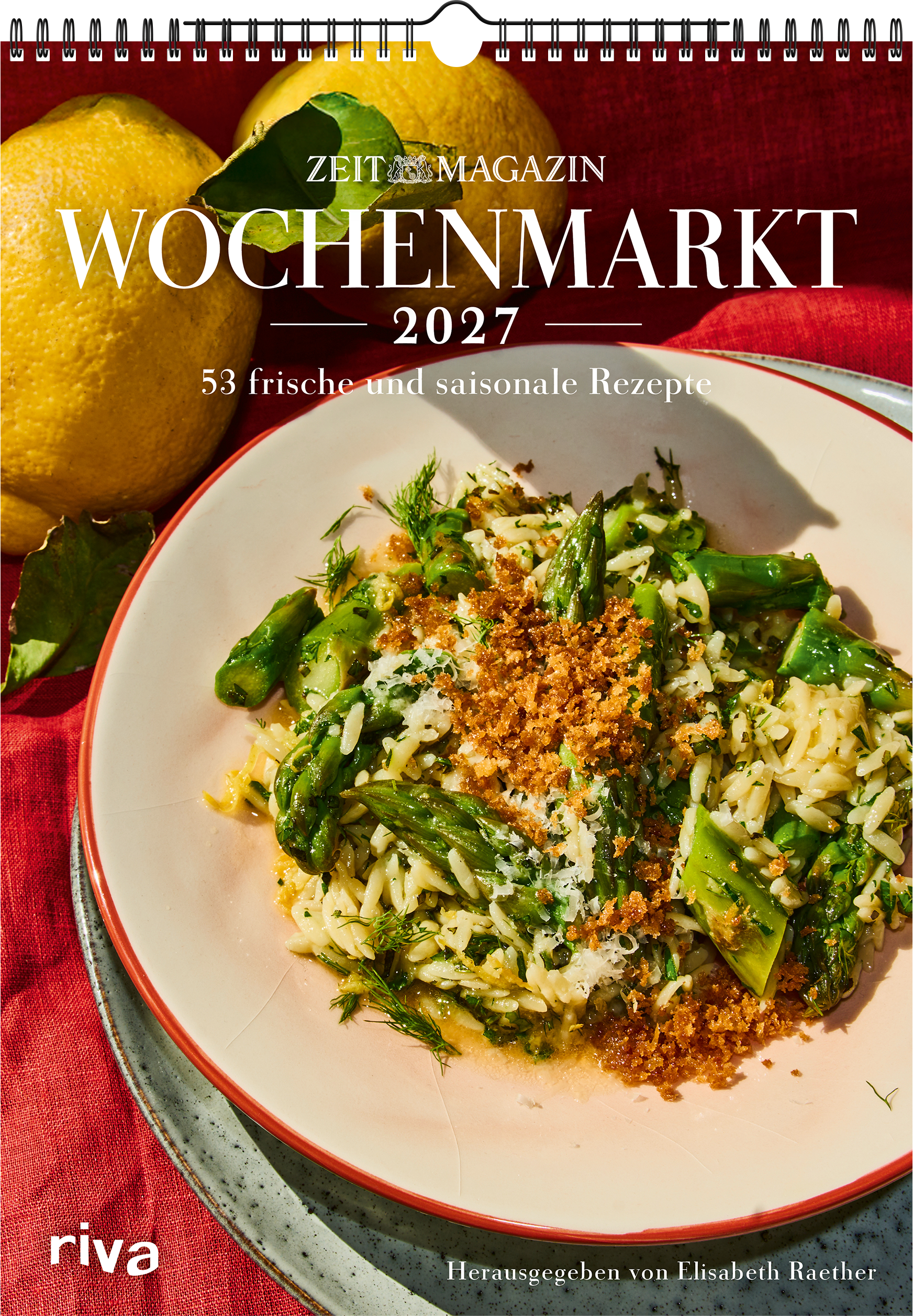 Seit 14 Jahren präsentiert Elisabeth Raether in ihrer beliebten Wochenmarkt-Kolumne im ZEITmagazin jede Woche kreative Rezepte, in denen sie frische, saisonale Zutaten vom Markt auf originelle Weise zubereitet. Mit 53 herzhaften und süßen Rezepten ist der offizielle Kalender für alle Wochenmarkt-Fans ein treuer Begleiter durch die vier Jahreszeiten. Jede Woche inspiriert er mit neuen Ideen für die Zubereitung der Obst- und Gemüseausbeute vom Wochenmarkt.