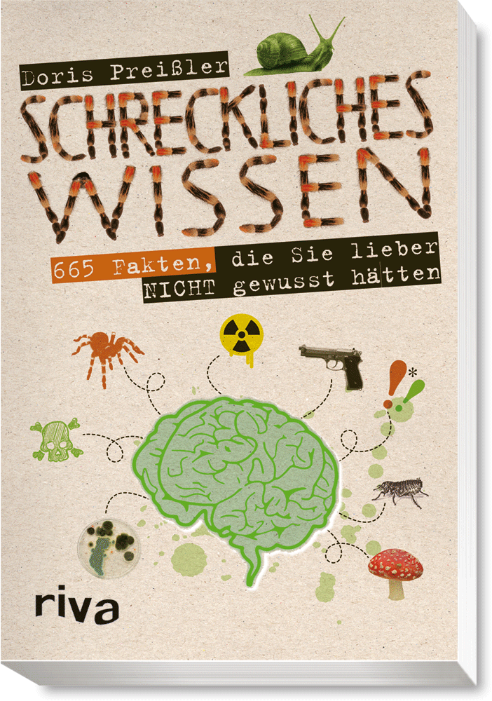 Es gibt Lexika zu fast allen Themen: zu verbotenem Wissen, unnützem Wissen, Sex-Wissen, Frauen-Wissen, Männer- Wissen... Die Zeit ist reif für ein Lexikon, das das schreckliche Wissen dieser Welt versammelt. Alles, was Sie wissen wollen, bisher aber nie zu fragen wagten: die tödlichsten Gifte, die schlimmsten Krankheiten, die ekligsten Nahrungsmittel, die spektakulärsten Verletzungen, die gefährlichsten Transportwege, die giftigsten Tiere u.v.m. Mit diesem Wissen werden Sie zum König jeder Halloween-Party. • In Madenkäse (»Casu Marzu«), einer Spezialität aus Sardinien, wohnen lebendige Maden. Sie werden bis zu 8 Millimeter lang und springen bis zu 15 Zentimeter hoch. Deshalb wird ein Brot auf den Käse gelegt. Der Käse selbst schmeckt leicht gammelig und scharf, und er hinterlässt ein leichtes Brennen auf der Zunge. Das Gefühl kann aber auch von den lebenden Maden kommen, die im Mund herumkriechen. Bis 2005 war dieser Käse illegal, da bis dahin nicht sichergestellt war, dass die Maden keimfrei sind. • Bis 1829 kurierte man quälende Zahnschmerzen mit dem Brenneisen. Die meisten Patienten verloren bei dieser Behandlung allerdings das Bewusstsein. Um die offen liegenden Nerven abzutöten, nahm man Arsenpaste. • Viele Bars bieten kleine Schalen mit Snacks an – und viele greifen zu. Auch die Gäste, die sich nach einem Toilettengang nicht die Hände waschen. Deshalb fanden sich in Untersuchungen Urinspuren von bis zu 27 verschiedenen Personen an den Knabbereien.